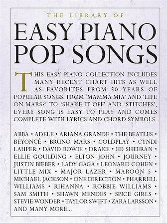This easy piano collection contains some of the very best pop songs from over 50 years of hits, anthems and solid gold classics. More than 100 songs are included and there’s something for everybody. The Beatles, David Bowie, Lady Gaga, Beyonce, Elvis Presley, Taylor Swift, Ed Sheeran, Leonard Cohen, Adele, Oasis, Coldplay and One Direction are just a few of the hitmakers whose songs can be enjoyed in easy piano arrangements complete with full lyrics and chord symbols.
