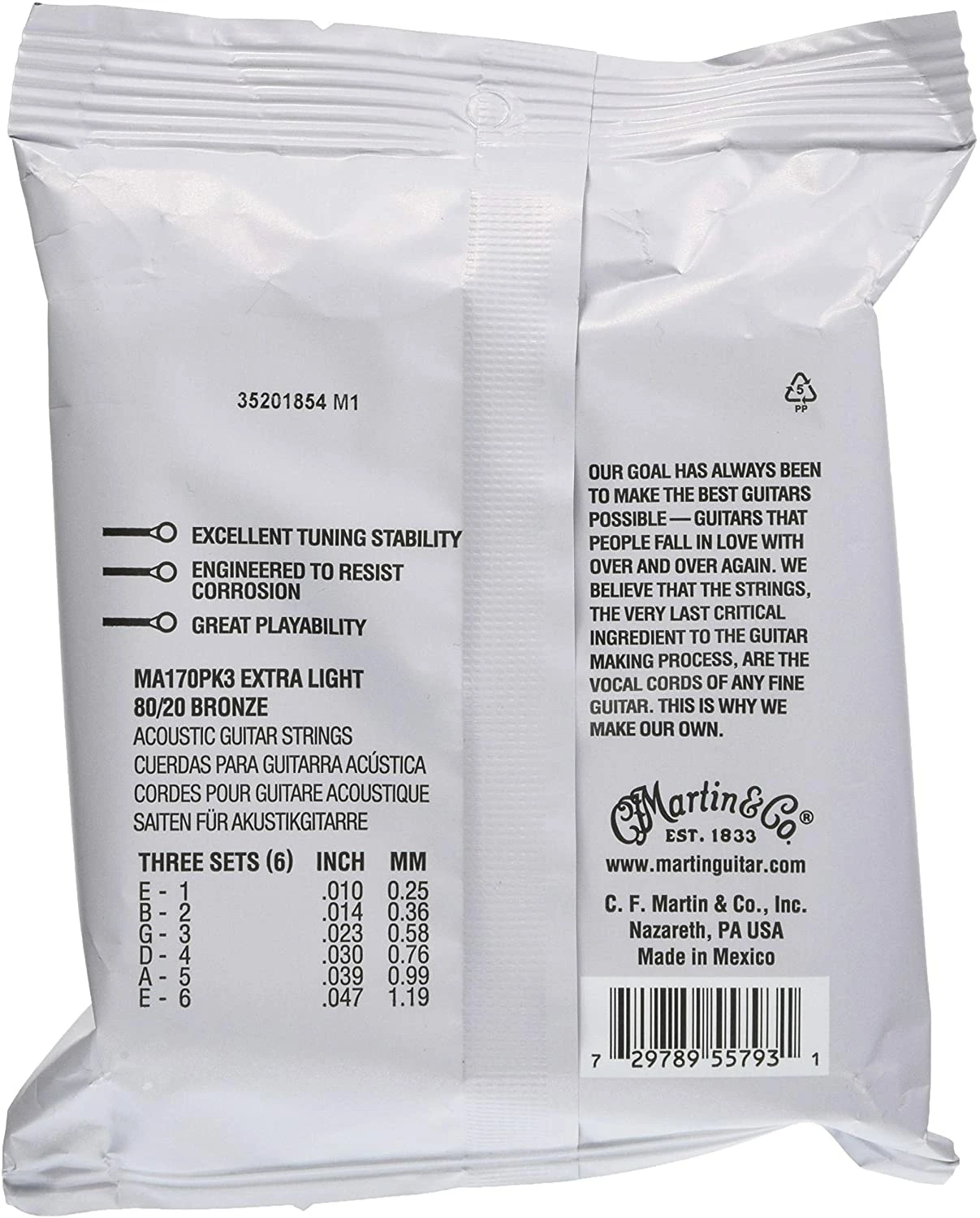 | Extra Light | .010 | .014 | .023 | .030 | .039 | .047 | 135.8 | MA170PK3 |