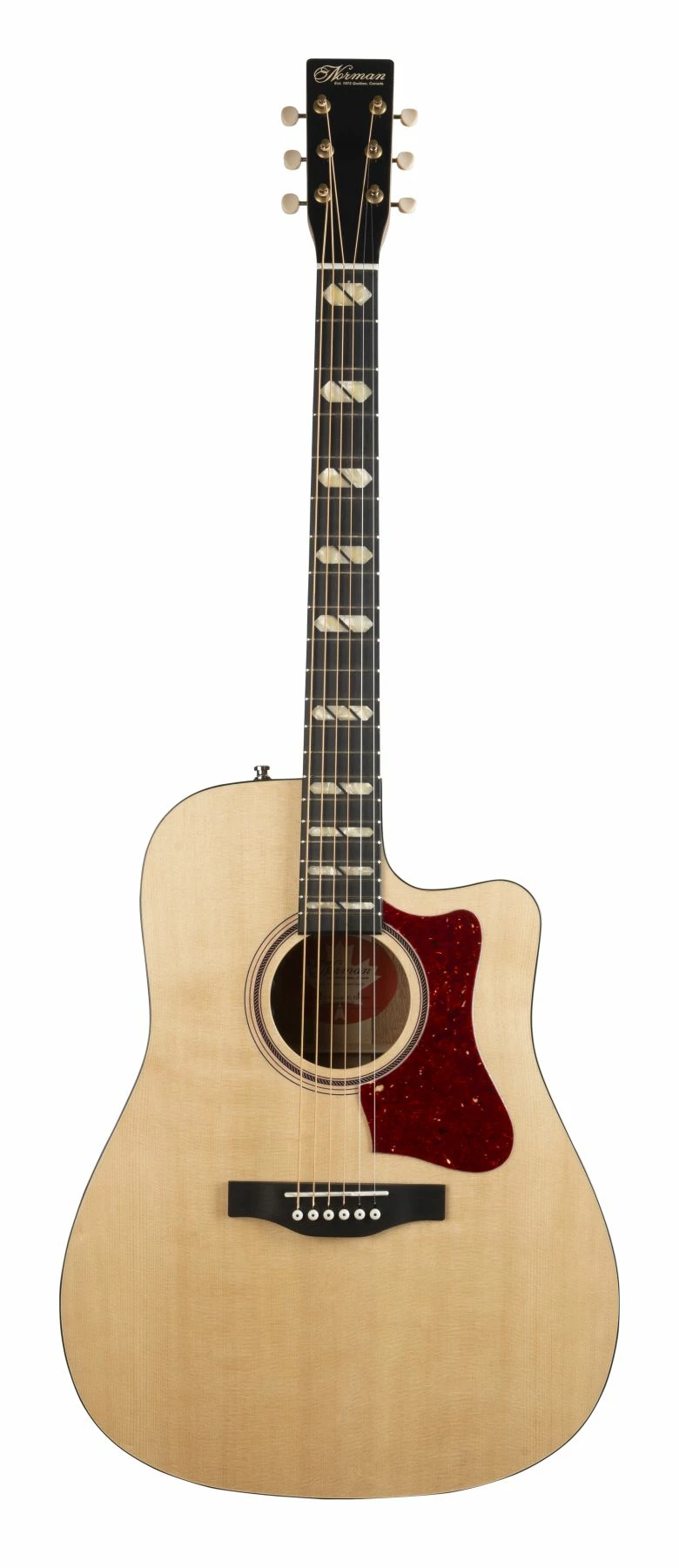 From stage to studio, this guitar delivers the same warm tone as the ST40, with the added feature of a cutaway for easy access to the upper frets, LR Baggs Element electronics and the protection and the aesthetic beauty of a Gloss top.