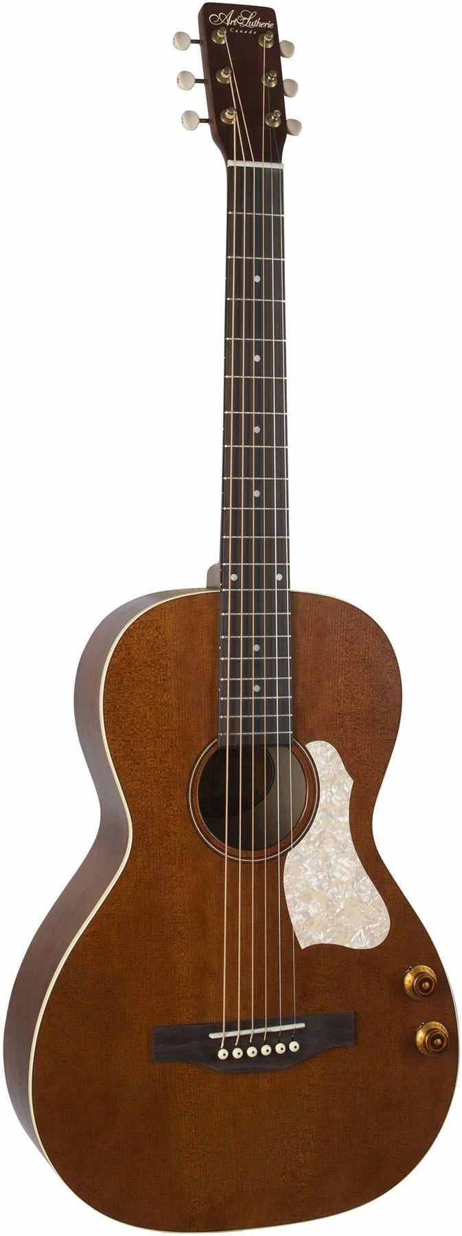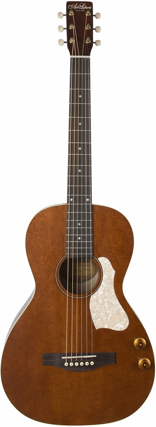 The Art & Lutherie 047727 Roadhouse Havana Brown Q-Discrete comes equipped with a Q-Discrete preamp with tone and volume controls on the body.