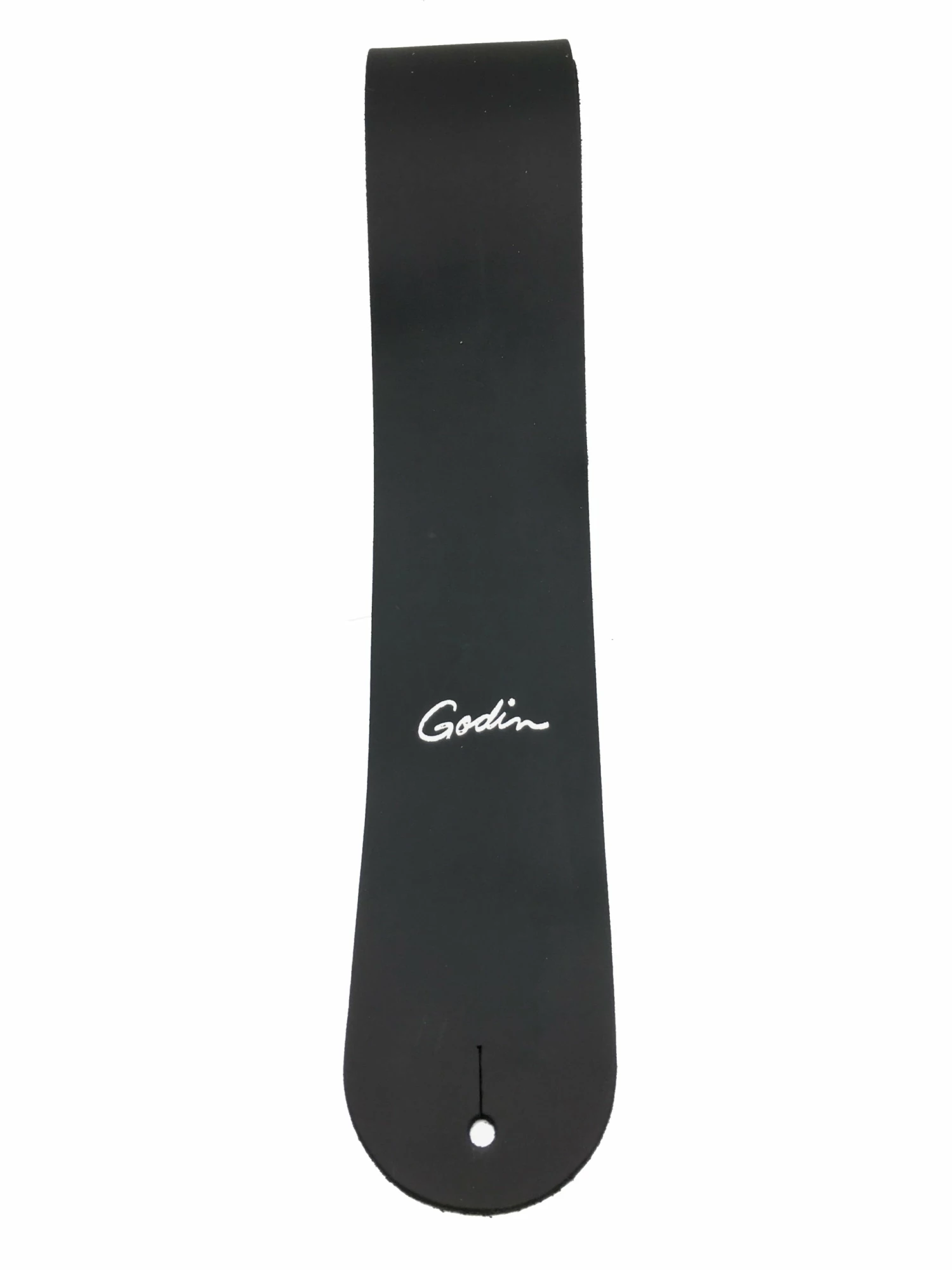 This Godin guitar strap with printed Godin logo features the comfort and quality of its durable premium black leather strap.