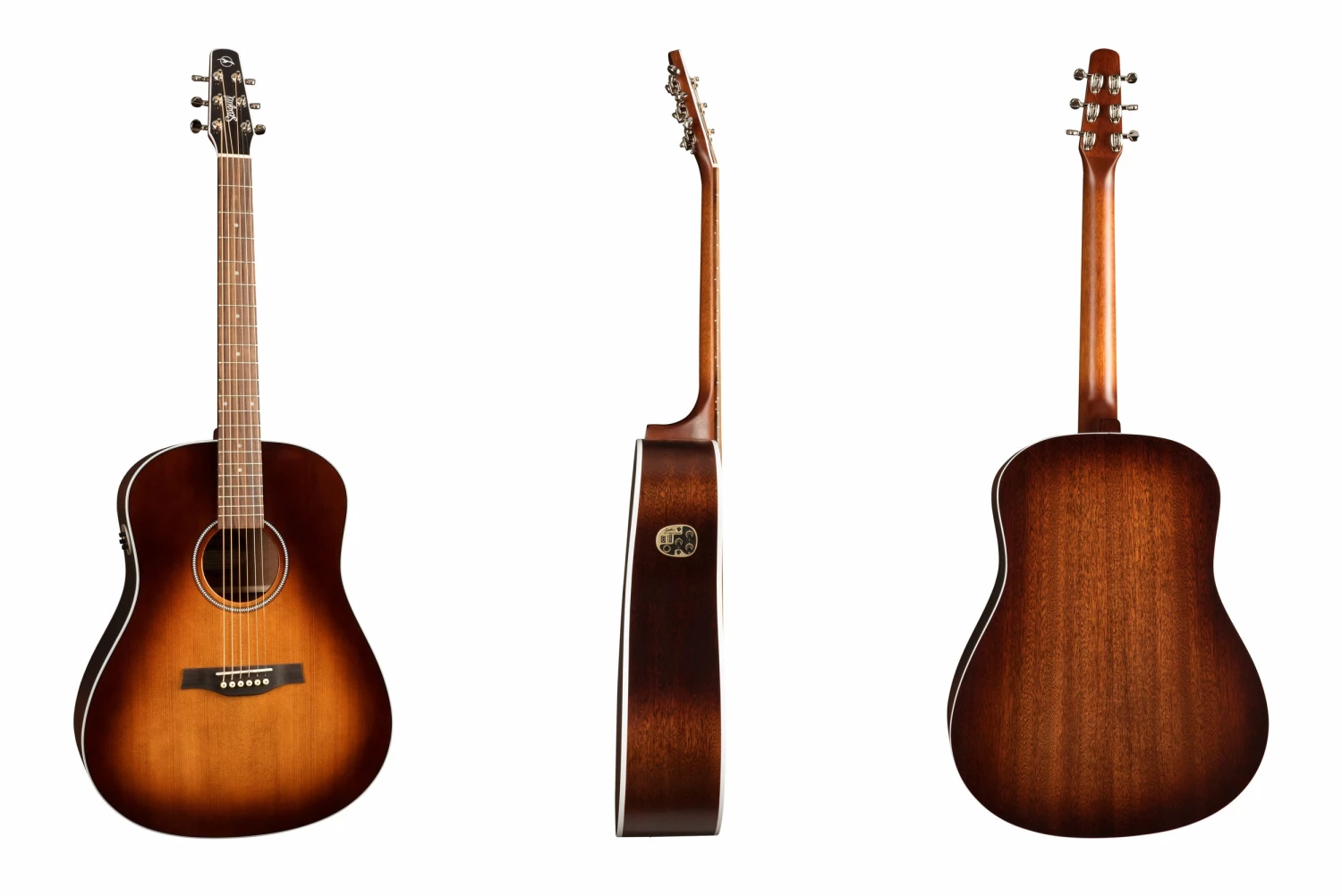 The Maritime SWS Mahogany Burnt Umber GT, as with all SWS models, features all solid wood construction with a Select Pressure Tested solid spruce top and solid mahogany back & sides. This model features the stunning, rich & vintage look of its Burnt Umber finish, with a Gloss Top (GT) & the beautiful satin sheen of semi-gloss back & sides. Our Custom Polished Finish provides excellent protection but at the same time is extremely light and elastic. This is a crucial point in both the sound of the guitar and its ability to age – a thick finish muffles a guitar’s vibration and blocks aging. This model includes Godin Quantum IT electronics with built-in tuner.