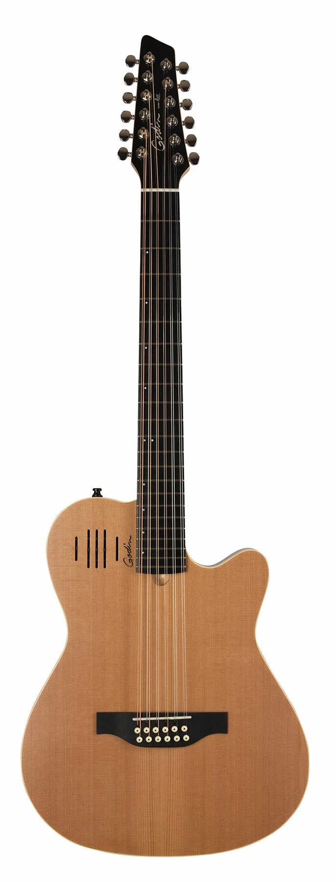 The best-sounding and easiest 12-string guitar, in terms of playability, on the market. The two-chamber light maple body is two inches deep and fitted with a book-matched solid cedar top. The 25½” scale neck is crafted from rock maple.