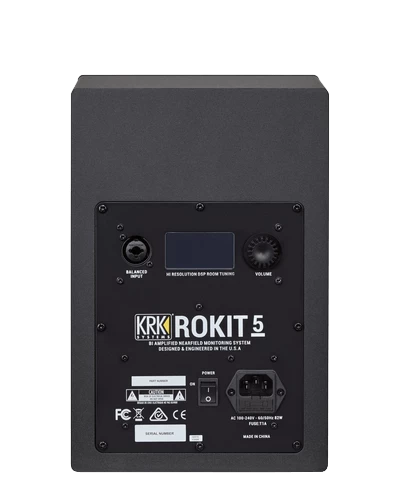 The new 5″ KRK ROKIT RP5 G4 (Generation 4) bi-amp professional monitor takes music and sound creativity to a whole new industry-level. DSP-driven Graphic EQ with 25 settings help condition your acoustic environment while offering new levels of versatility in a studio monitor. Matching drivers made with Kevlarยฎ ensures the same sonic integrity across all frequencies. A new scientifically designed speaker enclosure and front-firing port offer exceptional low-end extension and accuracy, punch and flexible room-positioning. The new powerful, yet efficient custom Class D power amplifier drives the speakers evenly and more efficiently at reduced operating temperatures and improves audio integrity.