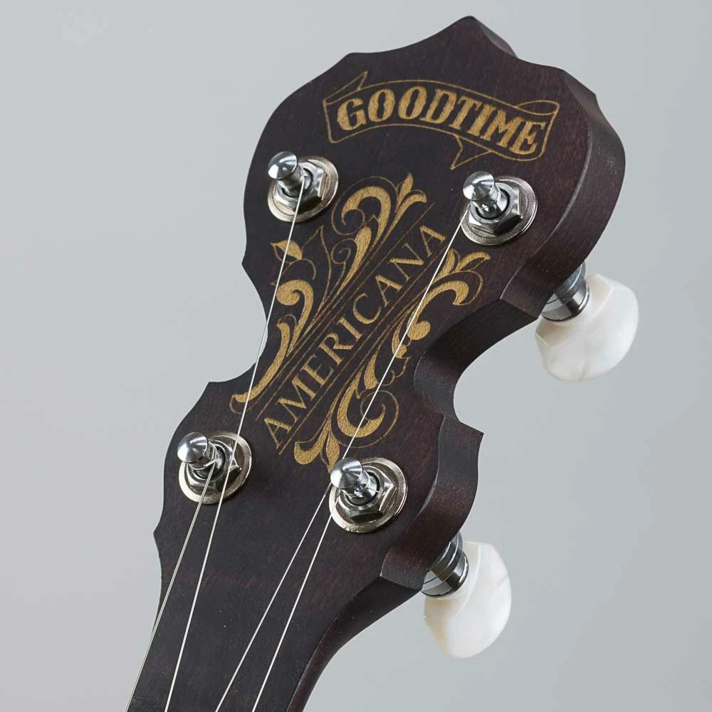 The Goodtime Artisan Americanaโข features a 12โ rim, which gives the banjo a stronger bass response and a much warmer tone. The fullness and warmth of the larger rim is further enhanced by the addition of a 12โ Renaissance head which beautifully complements the banjo both visually and sonically. The Artisan version of the Goodtime Americana features a rich brown stain, planetary banjo tuners, and the Midnight Maple fingerboard.