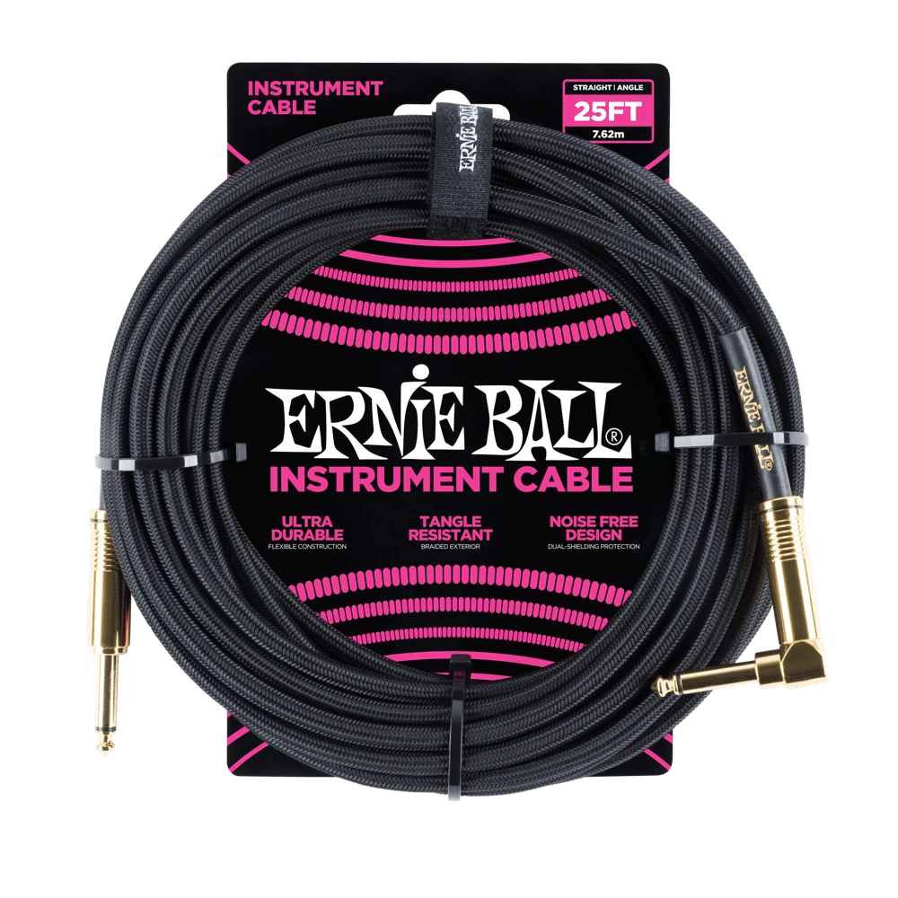 Promo ๐ ERNIE BALL 25′ BRAIDED STRAIGHT / ANGLE INSTRUMENT CABLE – BLACK P06058 ๐
