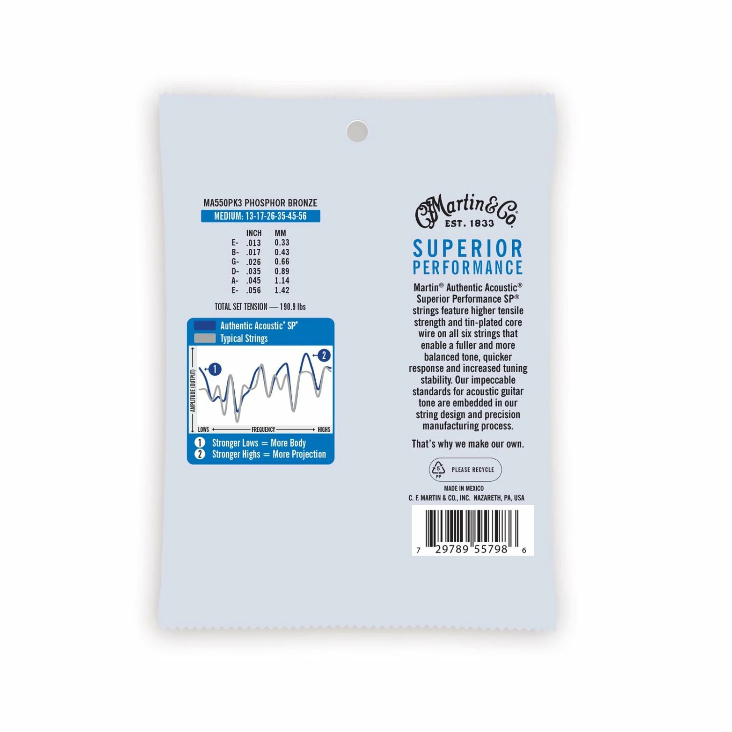 Martinยฎ Authentic Acousticยฎ Superior Performance SPยฎ strings feature higher tensile strength and tin-plated core wire on all six strings that enable a fuller and more balanced tone, quicker response and increased tuning stability. Our impeccable standards for acoustic guitar tone are embedded in our string design and precision manufacturing process. That’s why we make our own.