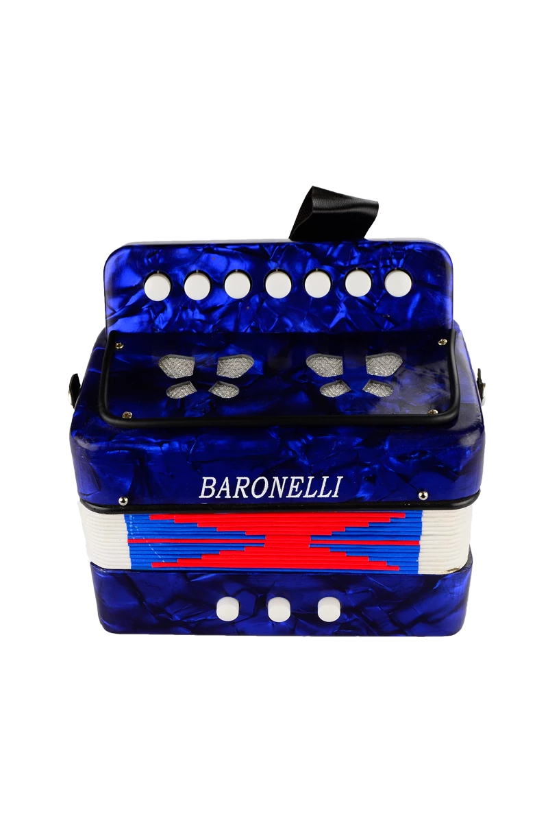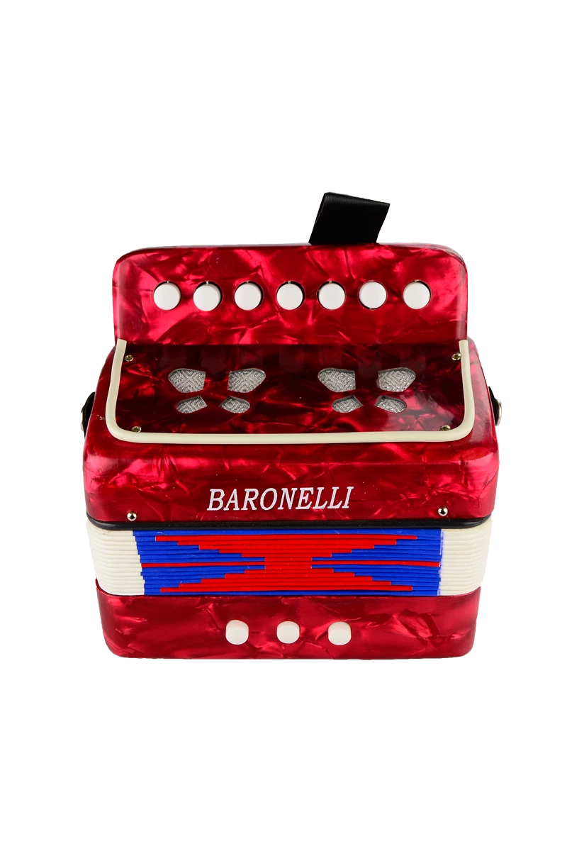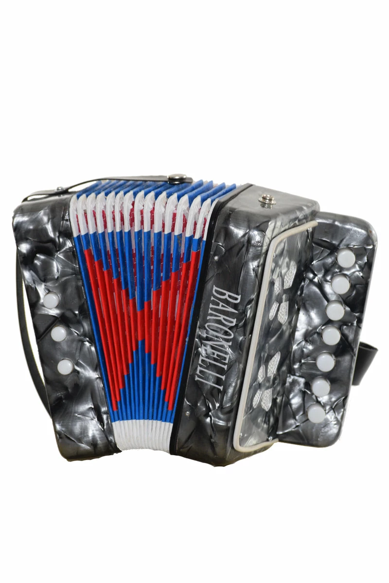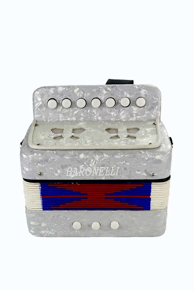 The Baronelli USA Junior Accordion 17 Keyย piano accordion is great fun to play. Cool perloid body makes for a very attractive appearance. Comes with adjustable straps and is ready to play.