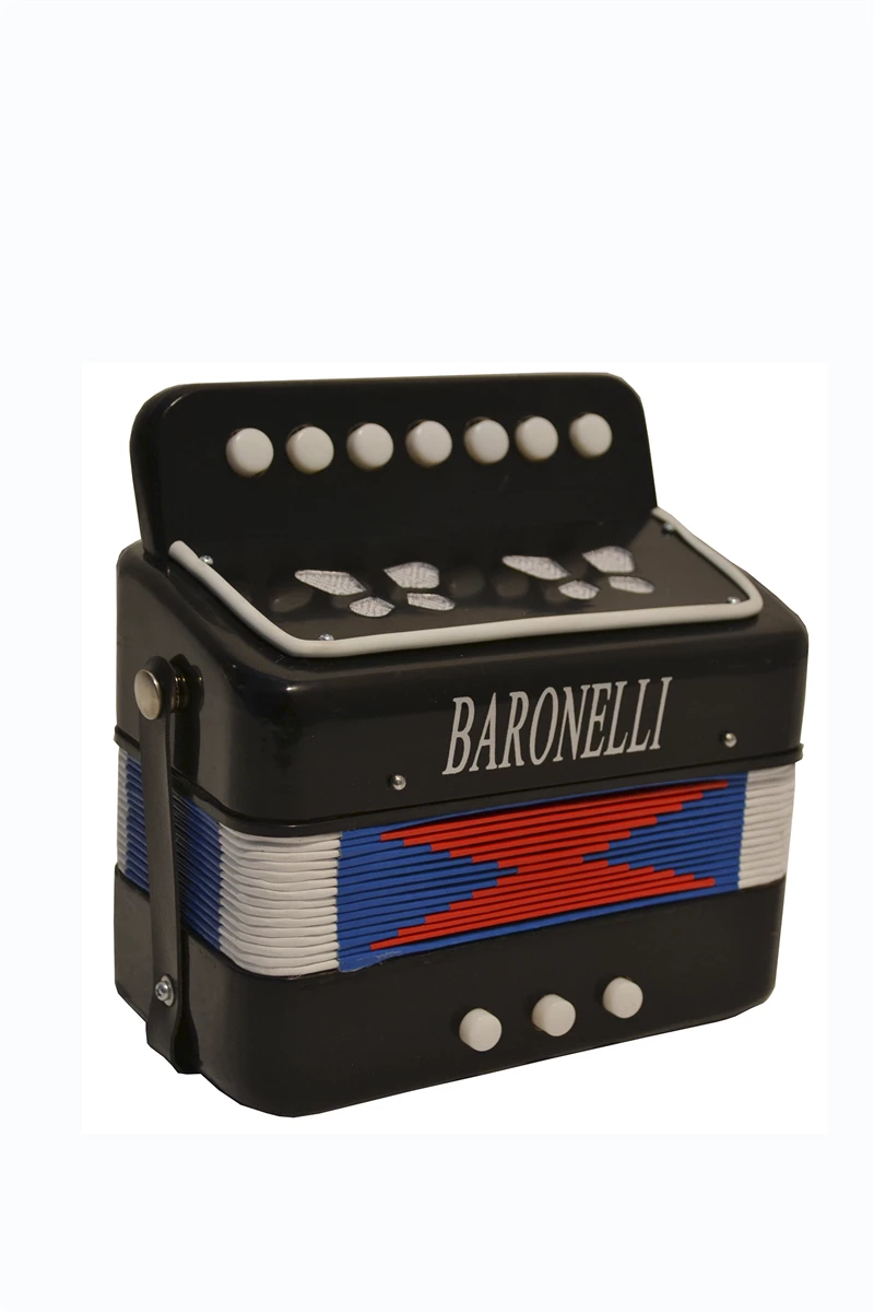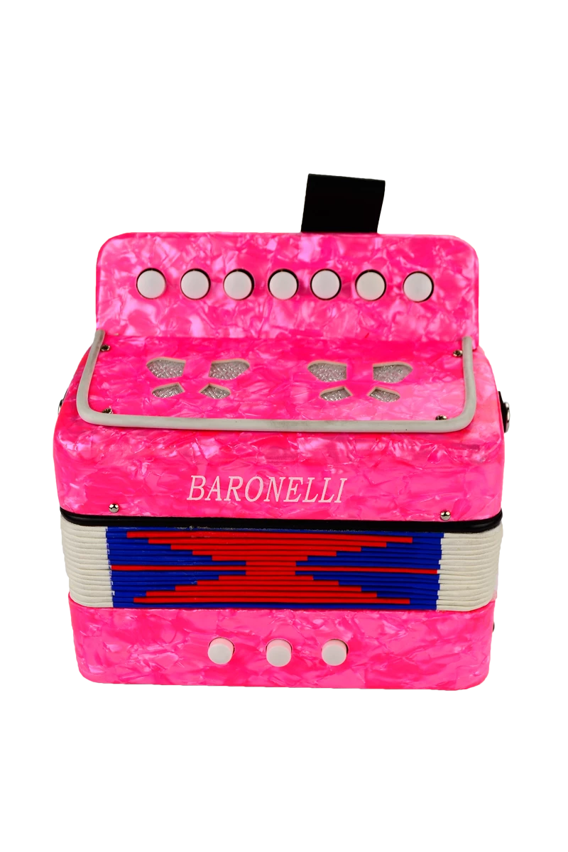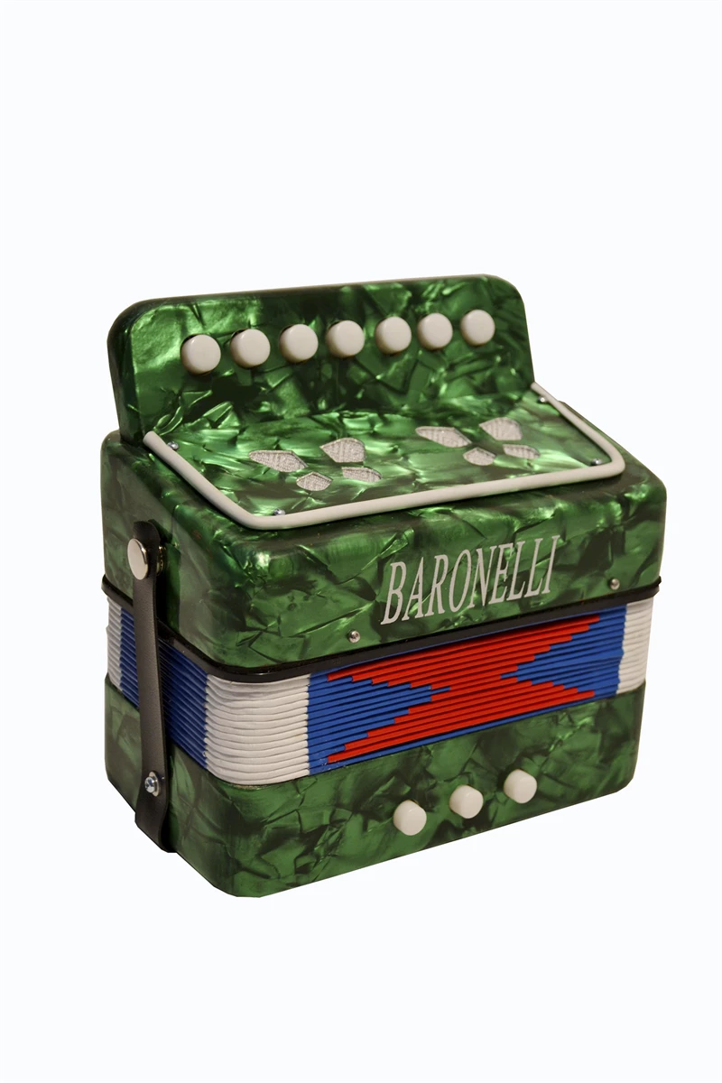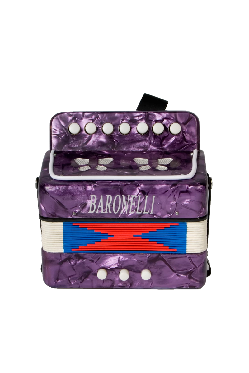 The Baronelli USA Junior Accordion 17 Keyย piano accordion is great fun to play. Cool perloid body makes for a very attractive appearance. Comes with adjustable straps and is ready to play.