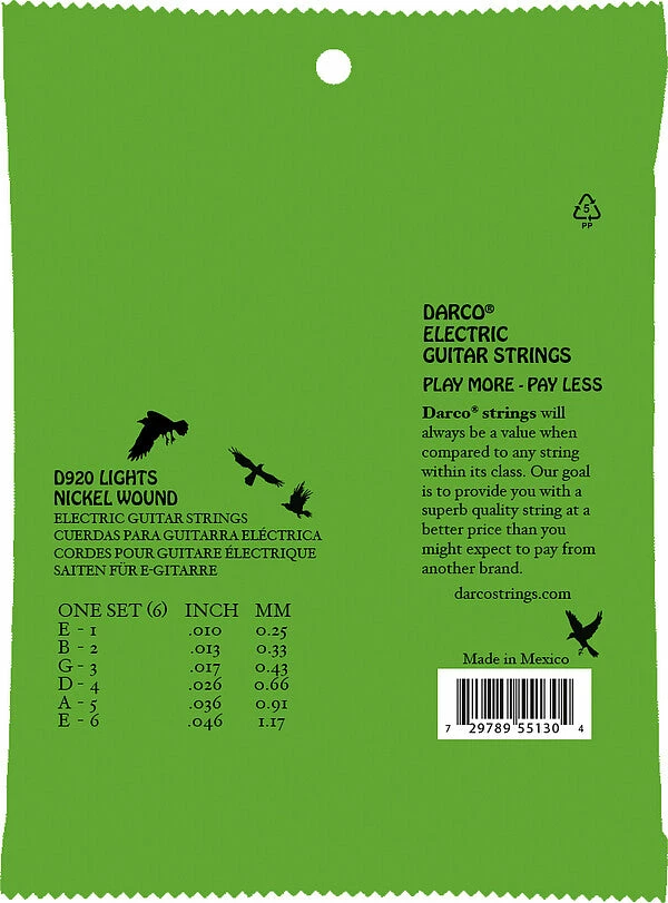 - Light gauges; .010/ .013/ .017/ .026/ .036/ .046
