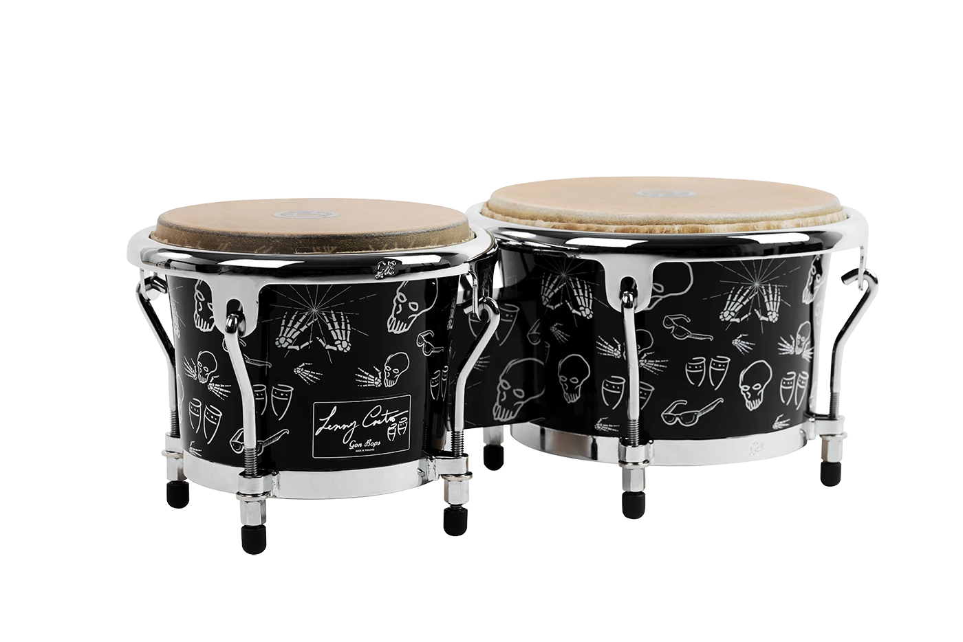 Our new Lenny Castro Signature Series Bongos feature Asian Oak shells and come with teardrop top rings, for ease of extended playing time. Each head is hand-selected from natural rawhide, providing a warm, rich tone and features Lennyโs hand-drawn skull logo. Gon Bops Lenny Castro Series drums boast eye-popping, exciting original artwork, highlighting Lennyโs identifiable sunglasses, skull and conga sketches. A true reflection of this master percussionist, at an approachable price range.