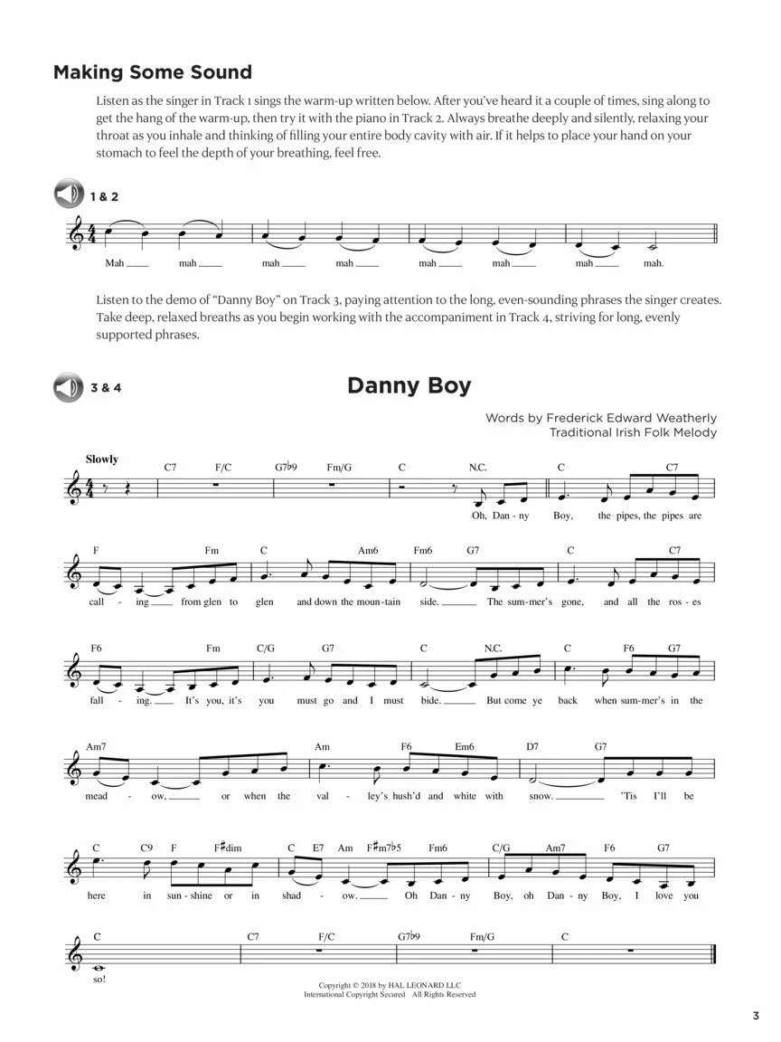 The voice book features lessons on: full-body singing, breathing, finding your voice, vocal warmups, the vocal break, caring for your voice, diction, music literacy, building skills, working on a song, dealing with nerves and more. Includes vocal lines from 12 songs: At Last โข Cups (When I’m Gone) โข Danny Boy โข Georgia on My Mind โข Give My Regards to Broadway โข Hallelujah โข Hard Times Come Again No More โข Homeward Bound โข I Ain’t Got Nobody (And Nobody Cares for Me) โข Scarborough Fair โข The Skye Boat Song โข You Raise Me Up.
