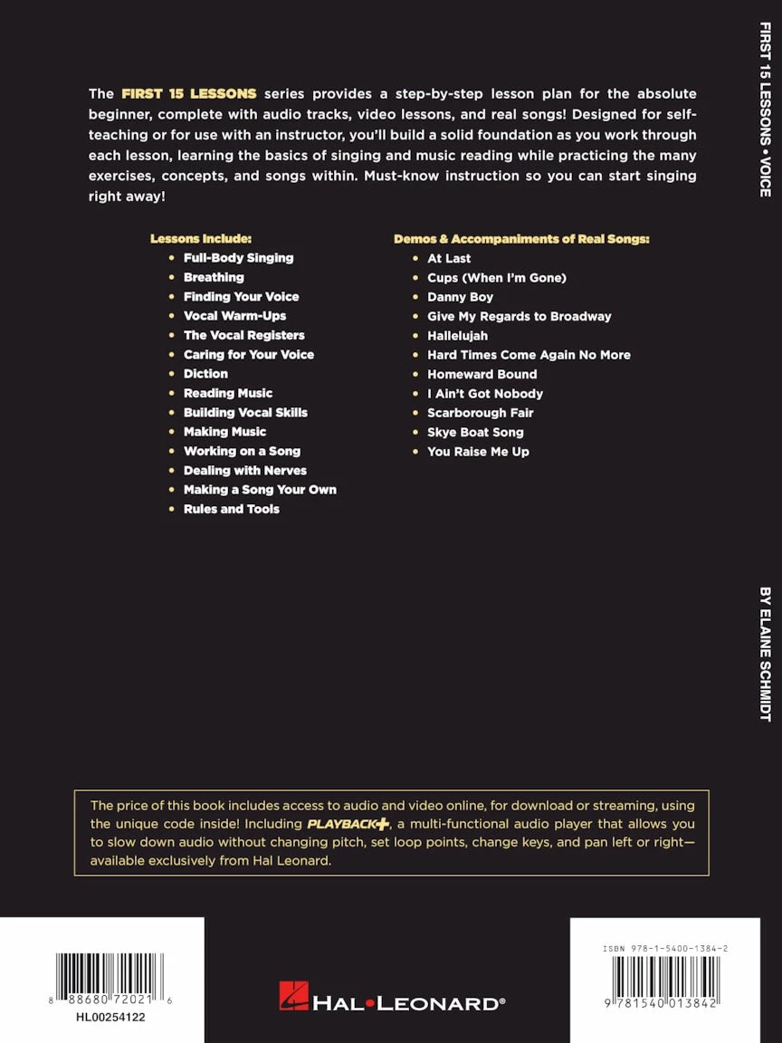 The First 15 Lessons series provides a step-by-step lesson plan for the absolute beginner, complete with audio tracks, video lessons, and real songs! Designed for self-teaching or for use with an instructor, you’ll build a solid foundation as you work through each lesson, learning the basics of singing and music reading while practicing the many exercises, concepts and song excerpts within. Each book in the series features must-know instruction so you can start performing right away, with a free online metronome!