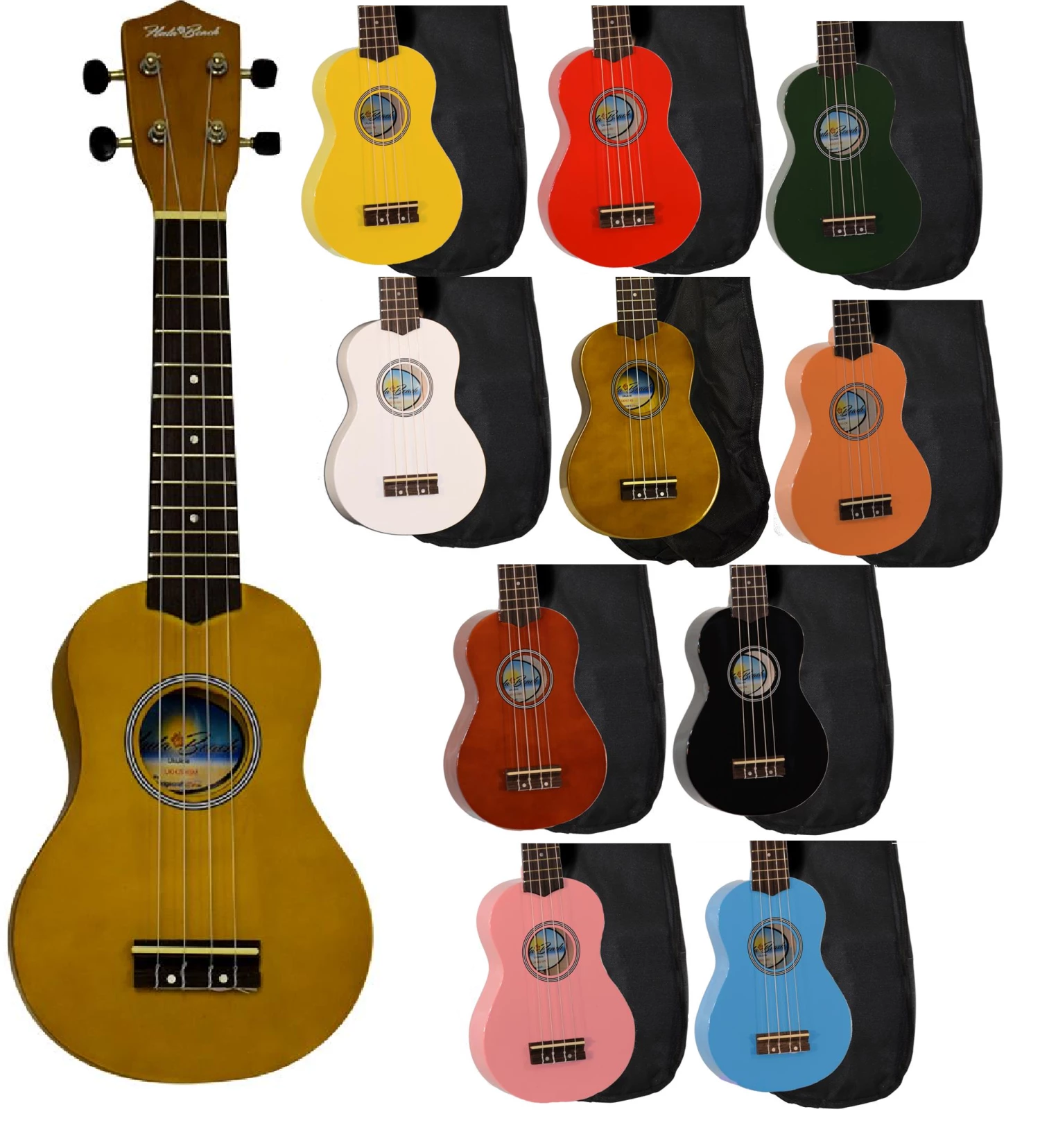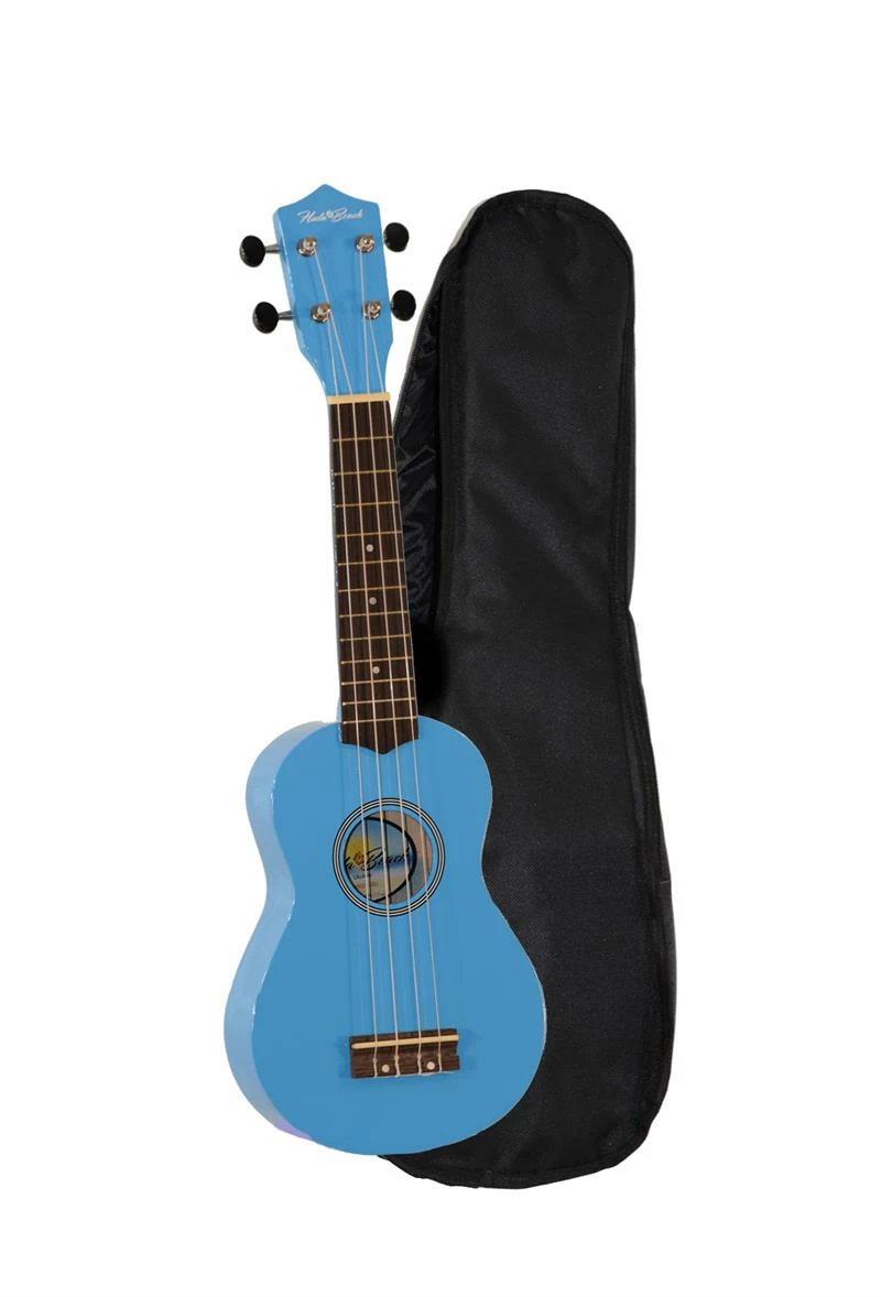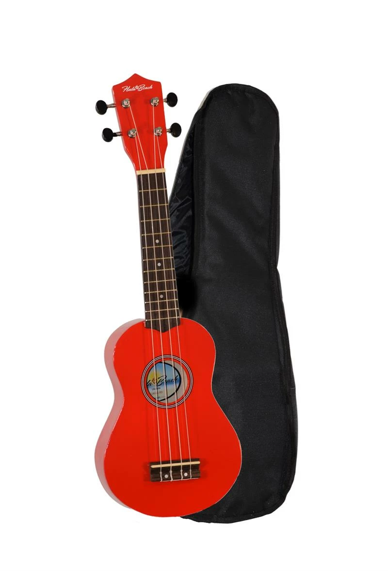 The islands are calling and the new colorful soprano ukuleles by Hula Beach are your ticket to paradise! A basswood body beautifully finished in a rainbow of colors with a rosewood fingerboard and bridge create sweet musical sounds. 14:1 ratio geared guitar style tuners with black buttons for smooth tuning. Nine colors to choose from. Includes gig bag carry case.
