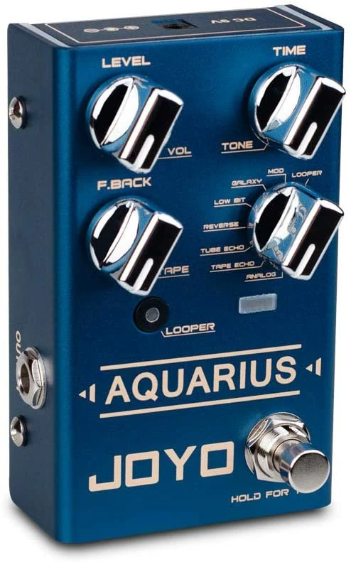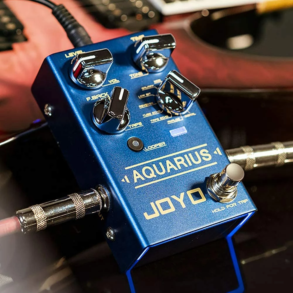 AQUARIUS is a multi-mode digital delay pedal with 8 digital delay effects. Apart from the iconic digital, analog delay effects, there are well-designed styles such as Low bit, Galaxy and more. Tap Tempo enables you to adjust delayรขโฌโขs speed. It also features LOOPER function, 5 minutes recording time. What distinguishes AQUARIUS from similar products is that LOOPER and Delay functions can be used simultaneously.