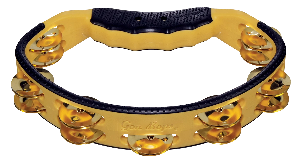 Gon Bops Tambourines offer the widest range of tone and are built for durability and musicality. The Yellow Tambourine is designed with brass jingles for warm, traditional tone. Their through-the-handle quick release design holds the tambourine securely in place without sacrificing the ergonomics of the handle. Includes patented Gon Bops V-Grip mount.