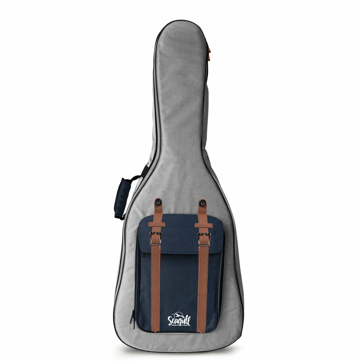 A player on the move looks for a gig bag that matches both his or her playing and personal style. The Seagull Dreadnaught Grey & Navy Gig Bag is a modern take on a classic accessory that will keep your guitar protected and looking really good while on the road. A durable nylon outer shell integrates with a large contrasting pocket and leather strap detail to hold strings, picks and even a tuner. Inside youโll find a polka-dot print design for that unexpected pop. *Cases exterior are indentical, the interior fit will differ based on the guitar model.