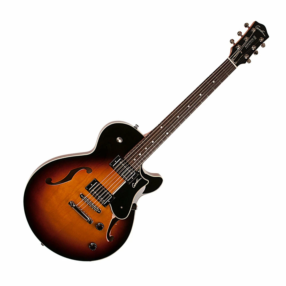 The Godin Montreal Premiere is a thin line, semi-hollow body electric and is destined to become instant favorite within your guitar collection. This Signature series model is a vibrant & versatile electric guitar for rock, blues and jazz players alike! It features an innovative and unique “breathe-through” carved spruce core, inside its Canadian wild cherry top, back & sides. This gives the body of the Montreal Premiere an astounding resonance unlike any other guitar in its class. This set-neck, short-scale electric is also available with a Bigsbyยฎ Tremolo option.