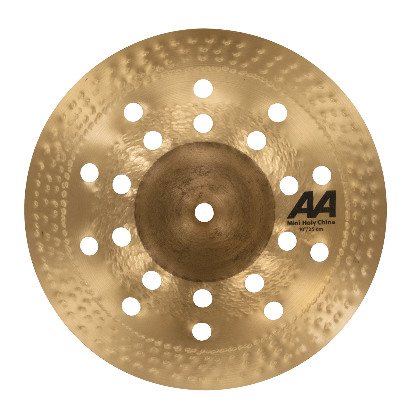 Designed with Chad Smith, all the volume, trash and cut of the Holy China is now available in a China Splash format. With its exaggerated high profile, single row of holes and raw bell, the 10″ AA Mini Holy China cuts better than any other cymbal its size. This special design delivers the type of high-end white noise that is typically associated with larger cymbals. Thats because more trash equals less tonal character and more white noise in the cymbals sound, resulting in boosted cut. Think of it as a mini-monster of volume and cut. SABIAN is committed to creating the widest, most innovative range of sounds on the planet, giving drummers more choice in creating their sound.
