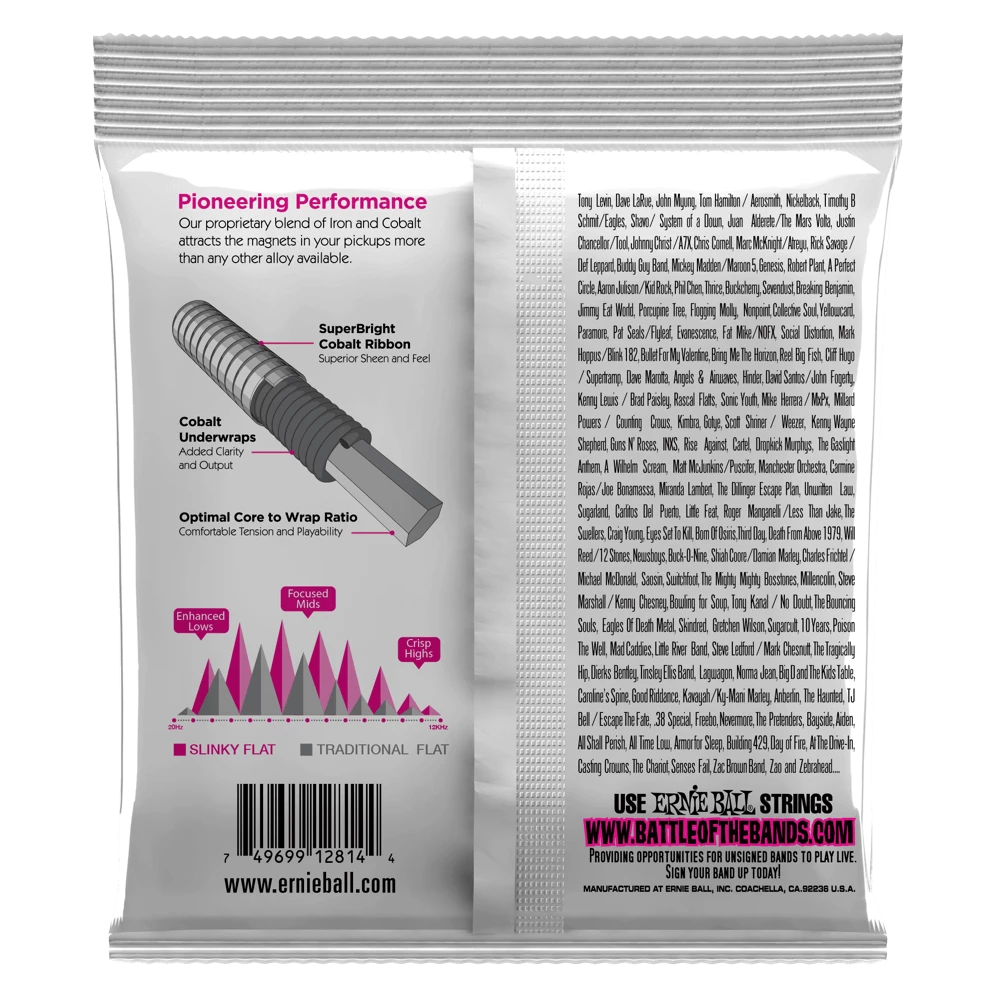 Ernie Ball Slinky Flatwound Bass Strings combine the smooth feel of traditional flats and the power of Cobalt. Featuring a SuperBright Cobalt ribbon wrap, Cobalt underwraps and optimal hex-core to wrap ratio, the new Flatwound Bass strings are the first flat that actually feels like a flat and sounds like a round. Gauges .045, .065, .080, .100