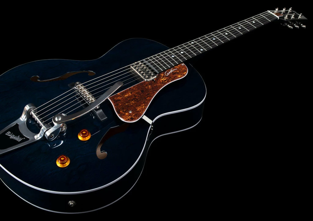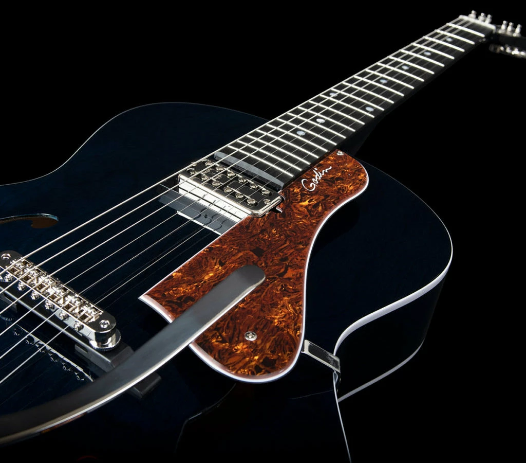 The Godin 047826 /ย 050956ย is a 5th Avenue Night Club Hollow Body 6 String RH Guitar – Indigo Blue.